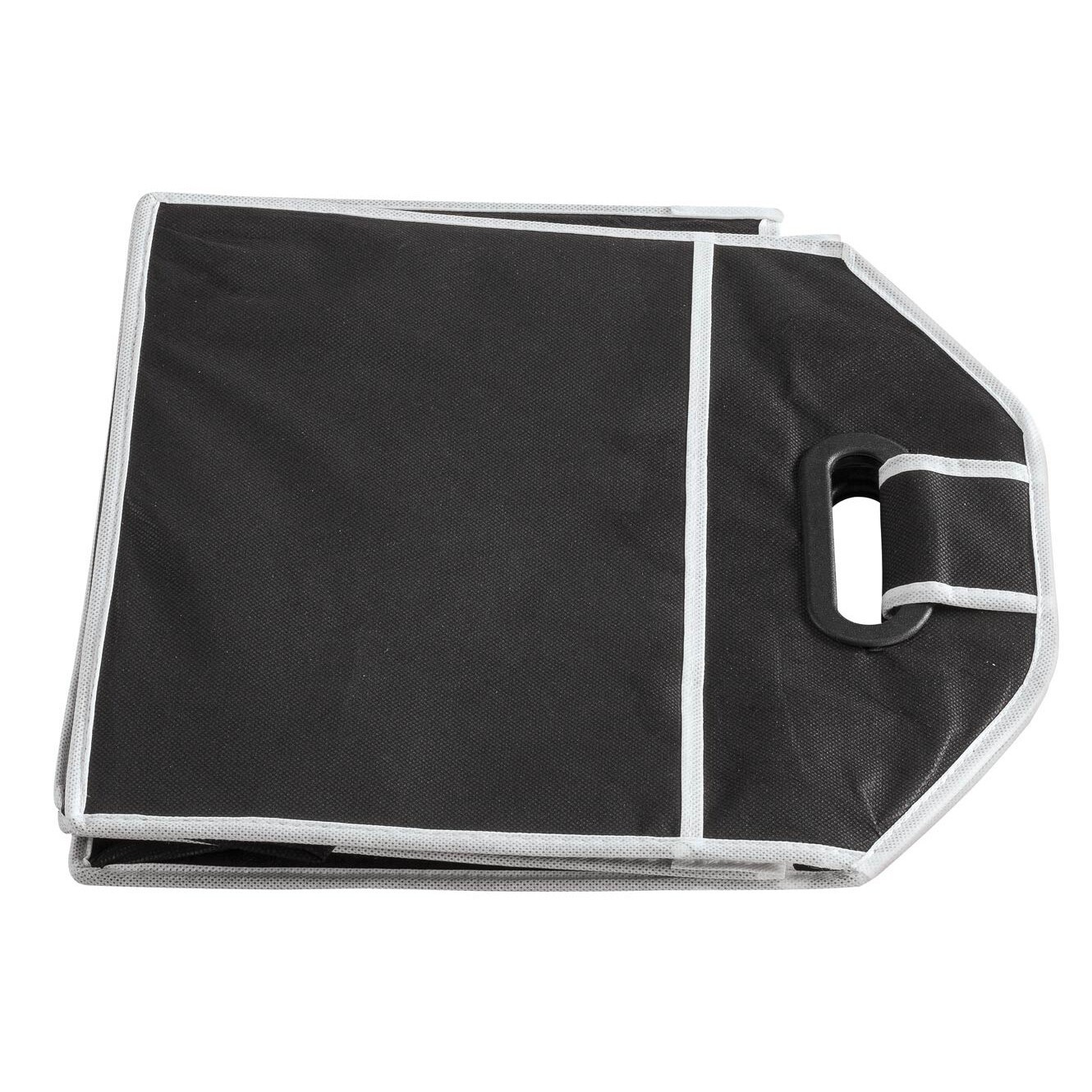 Collapsible trunk organizer measures 21 3/4 long x 12 3/4 wide x 12 3/4 high and folds down flat when not in use.