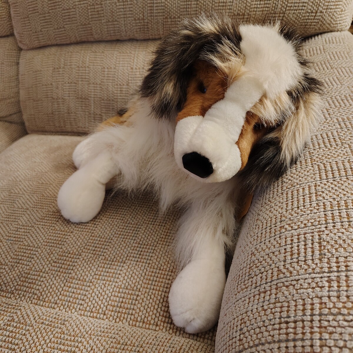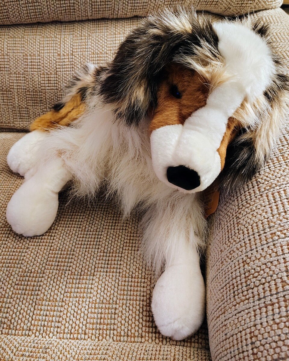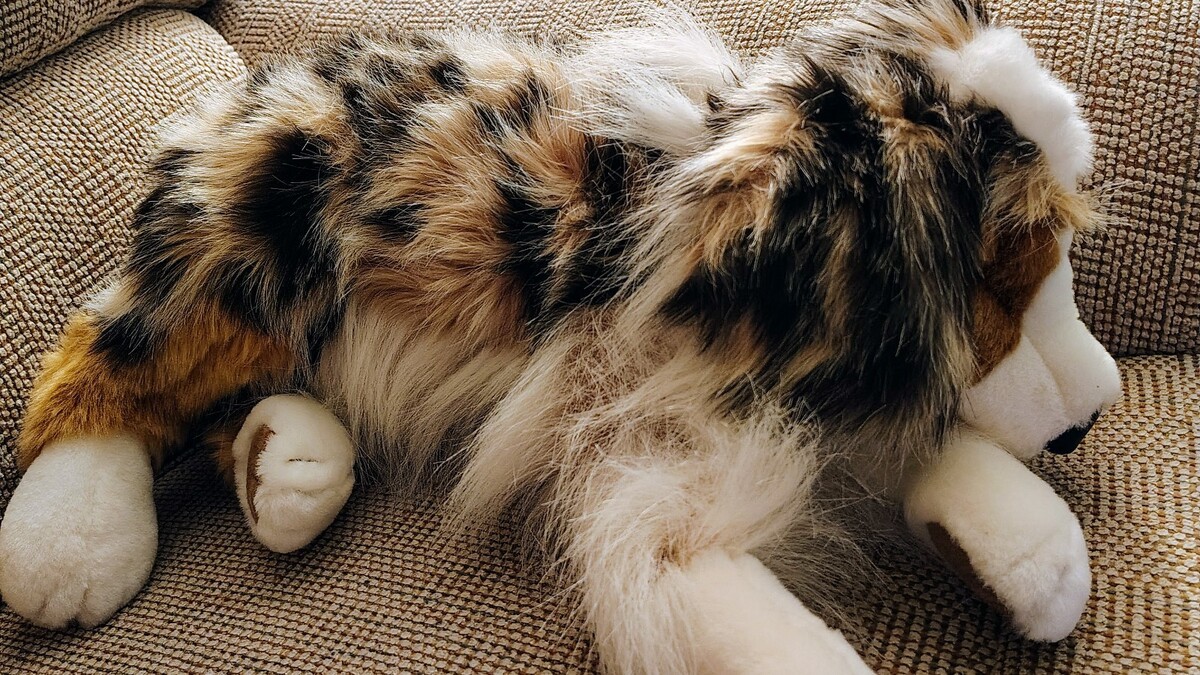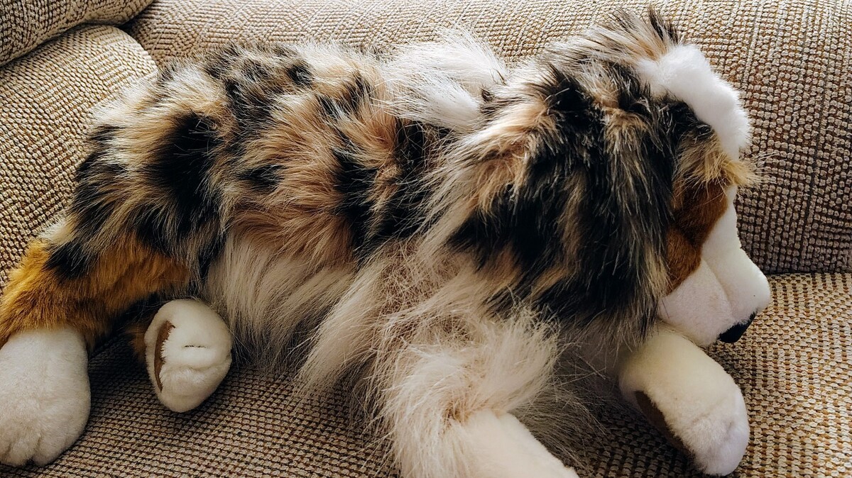 This one is exceptionally clean with soft, realistic fur and the signature expressive Folkmanis styling. The detailed tri-color merle patterning looks incredibly lifelike, and the puppet design allows for movement of the mouth and front paws.