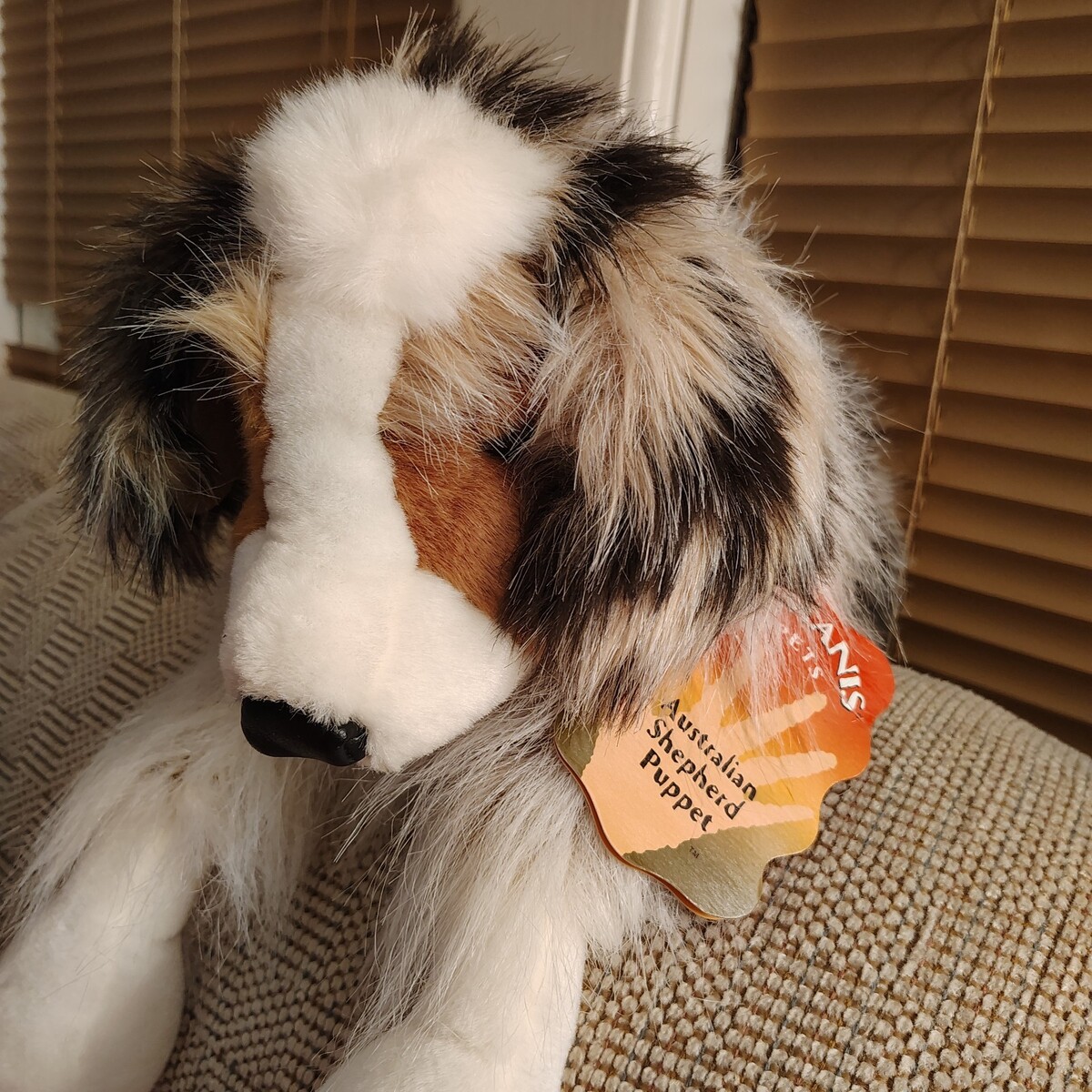 - Folkmanis Australian Shepherd Puppet 2829 Merle Plush Dog NWT RARE Realistic 13”