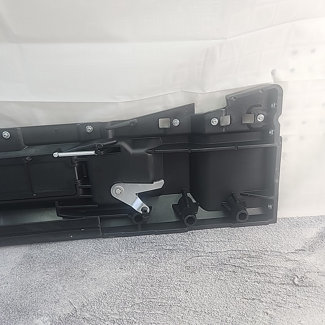 This product is a black front left interior door handle designed to replace OEM part number 7615209. It is a durable ABS and plastic handle with a rectangular shape and textured finish. It comes with screws for easy installation and is 31.25 inches long, 8 inches high, and 3 inches wide. It is made in China and weighs 5.5 lbs, making it a reliable and high-quality replacement part for Freightliner trucks from 1988 to 2012.