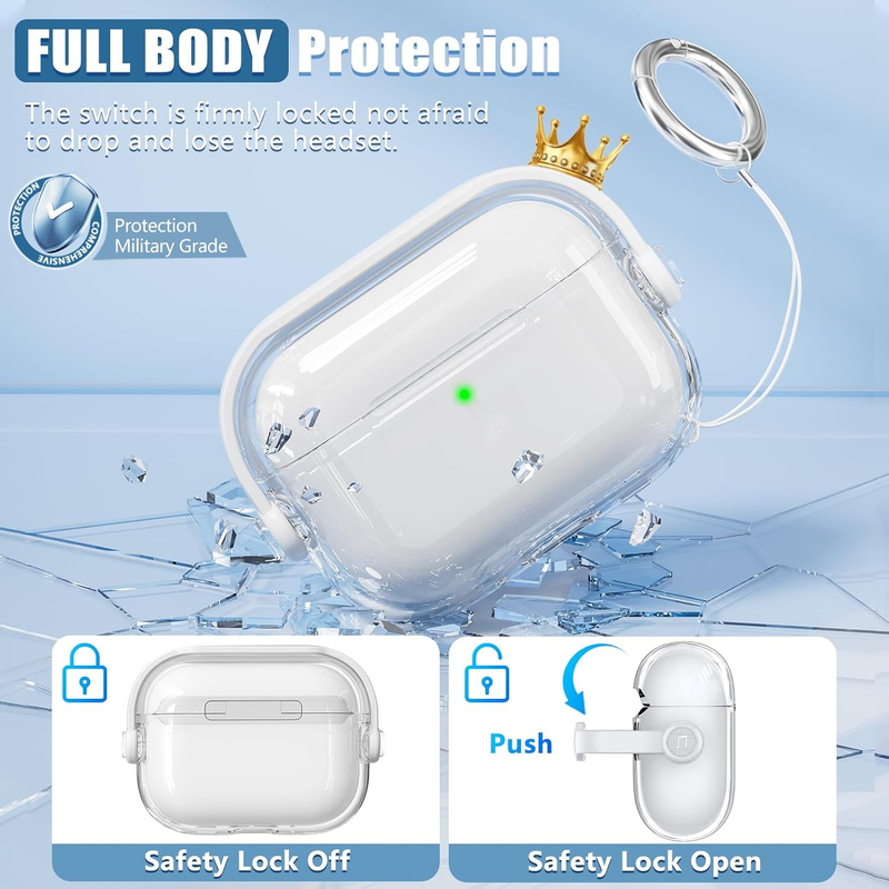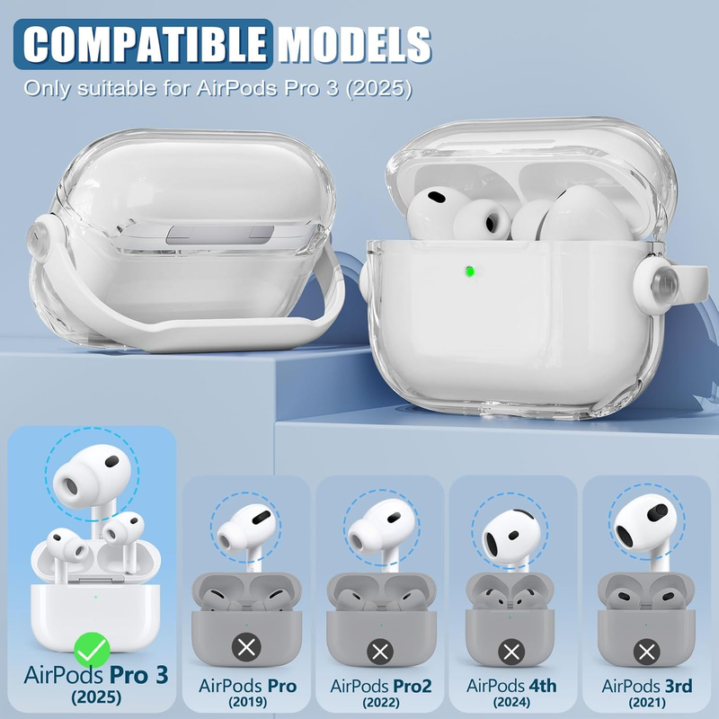 - For Airpods Pro 3 Case Clear,Safety Lock Cases for Apple Airpod Pro 3 Case 2025