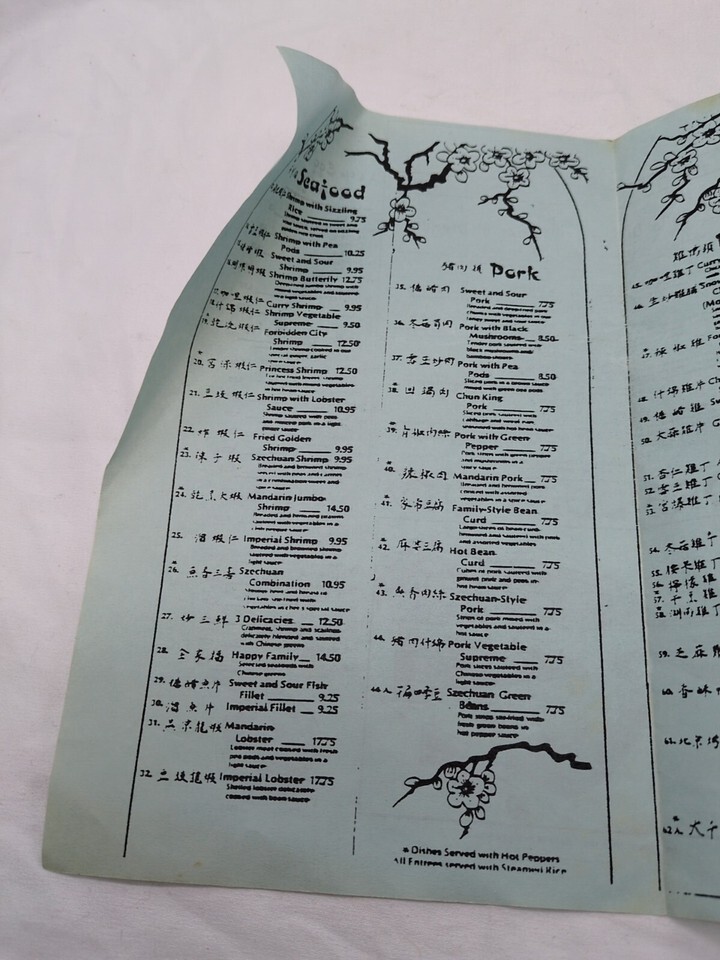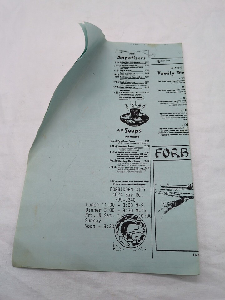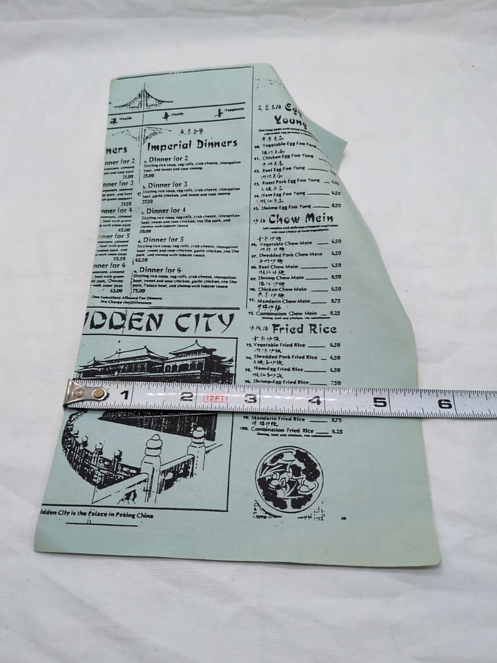 - Forbidden City IL Chinese Restaurant Photocopy Paper Menu 5 1/2" x 8 1/2"