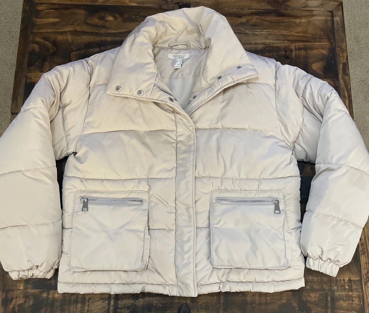 - Forever 21 Women’s Quilted Puffer Jacket, Size M Cream Color