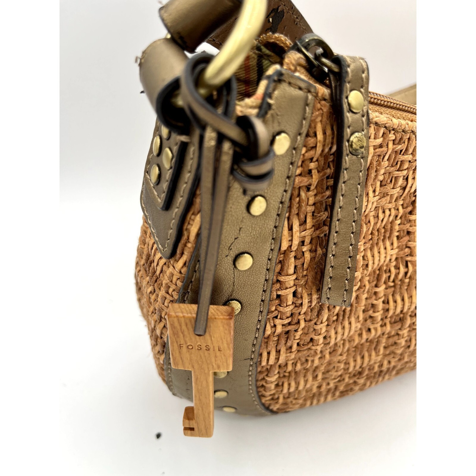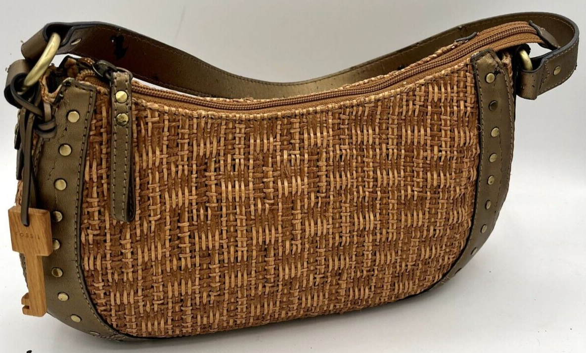 - Fossil 1954 classic shoulder purse light brown woven with key tag 75082