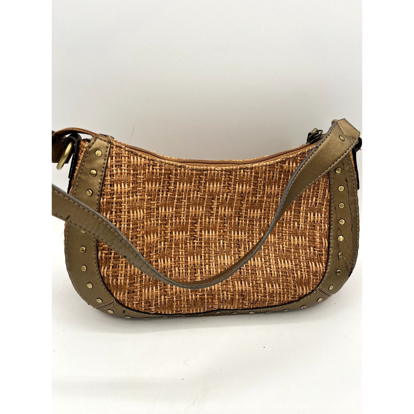 Fossil 1954 classic shoulder purse light brown woven with key tag 75082