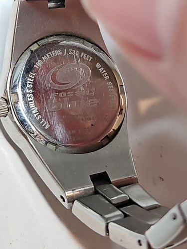 - Fossil Blue AM-4123 Stainless Steel Water Resistant Pink Face Need Battery