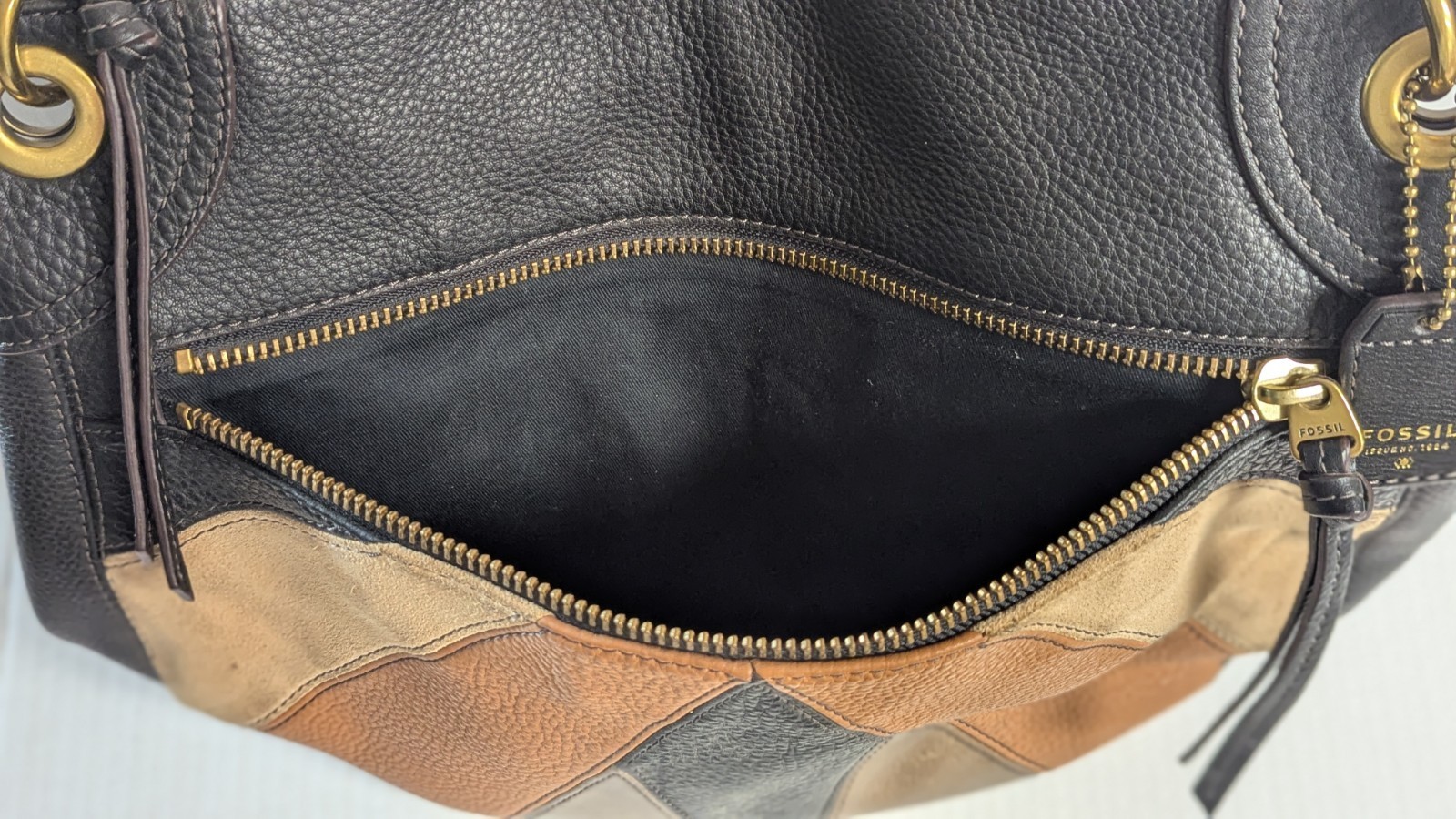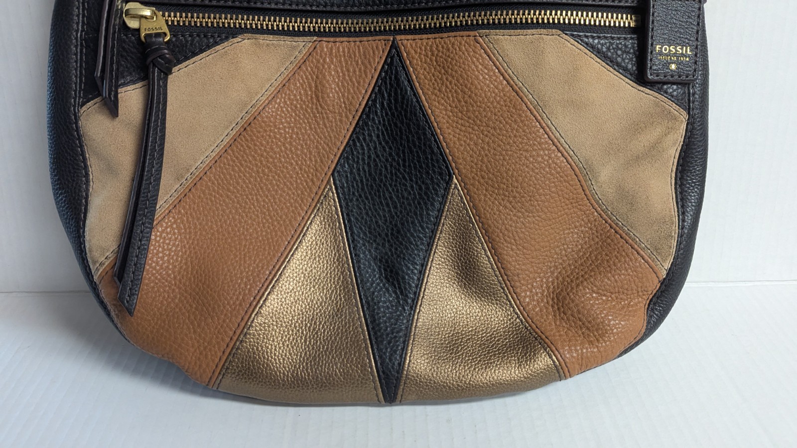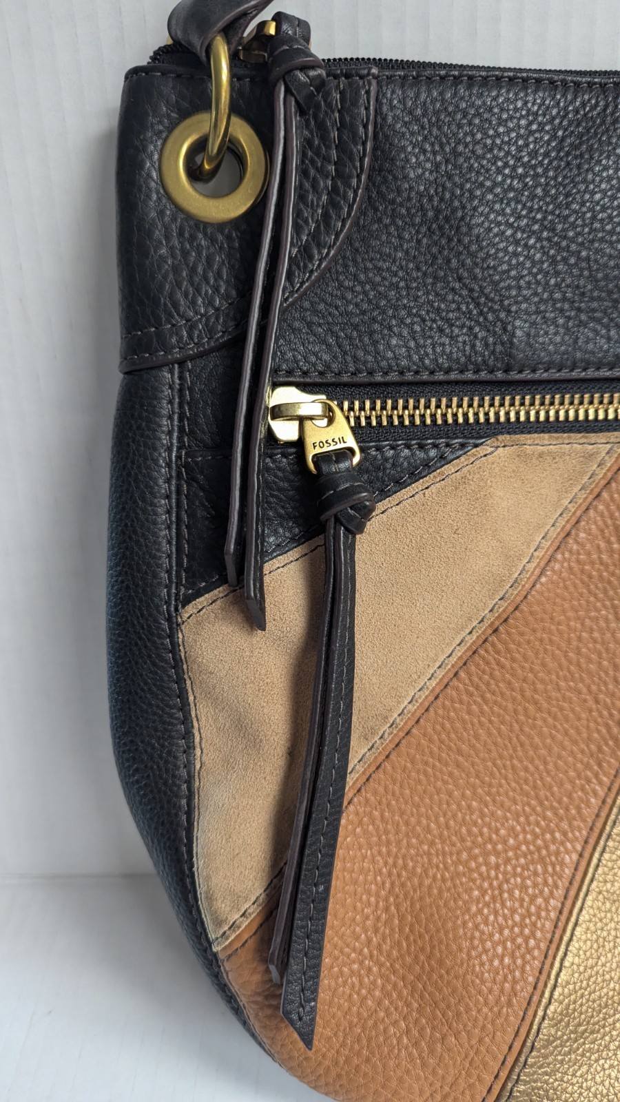 - Fossil Karli Handbag Patchwork Leather Suede Hobo Messenger Vintage Purse