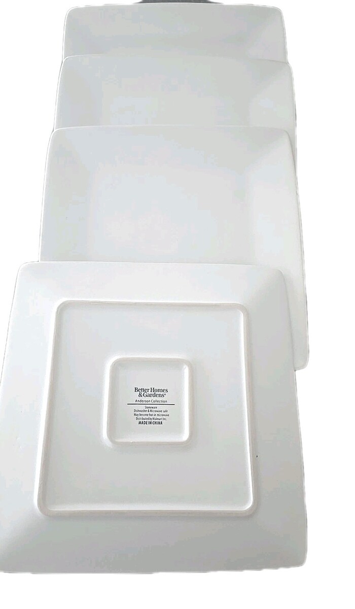 - Four (4) Better Homes ~ Anderson CREAM ~ Stoneware ~ 10.45 Square Dinner Plates