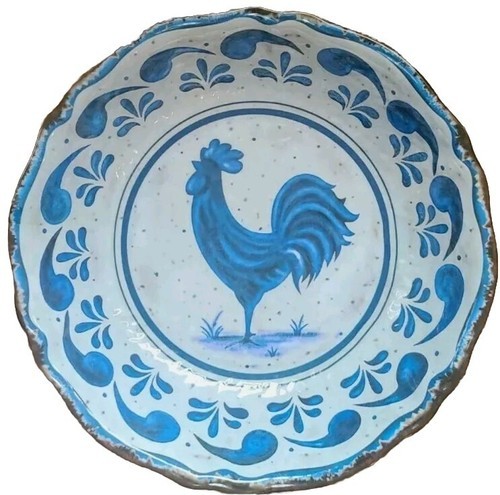Four (4) Melamine 9.75" Dinner Plates ~ Country ~ Rooster ~ Paisley ~ Blue White