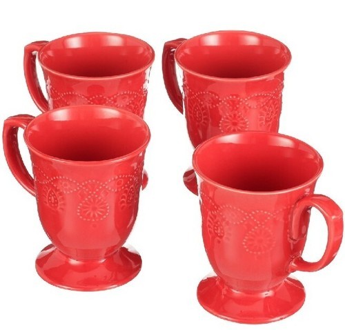 - Four (4) ~ Pioneer Woman Cowgirl Lace ~ 14 Ounce ~ RED ~ Stoneware Mug Set