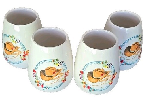 - Four (4) Pioneer Woman Sweet Romance COWGIRL HAT 16 Ounce Stoneware Cup/Tumbler