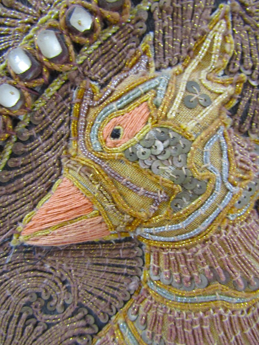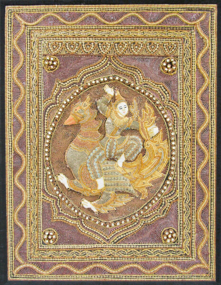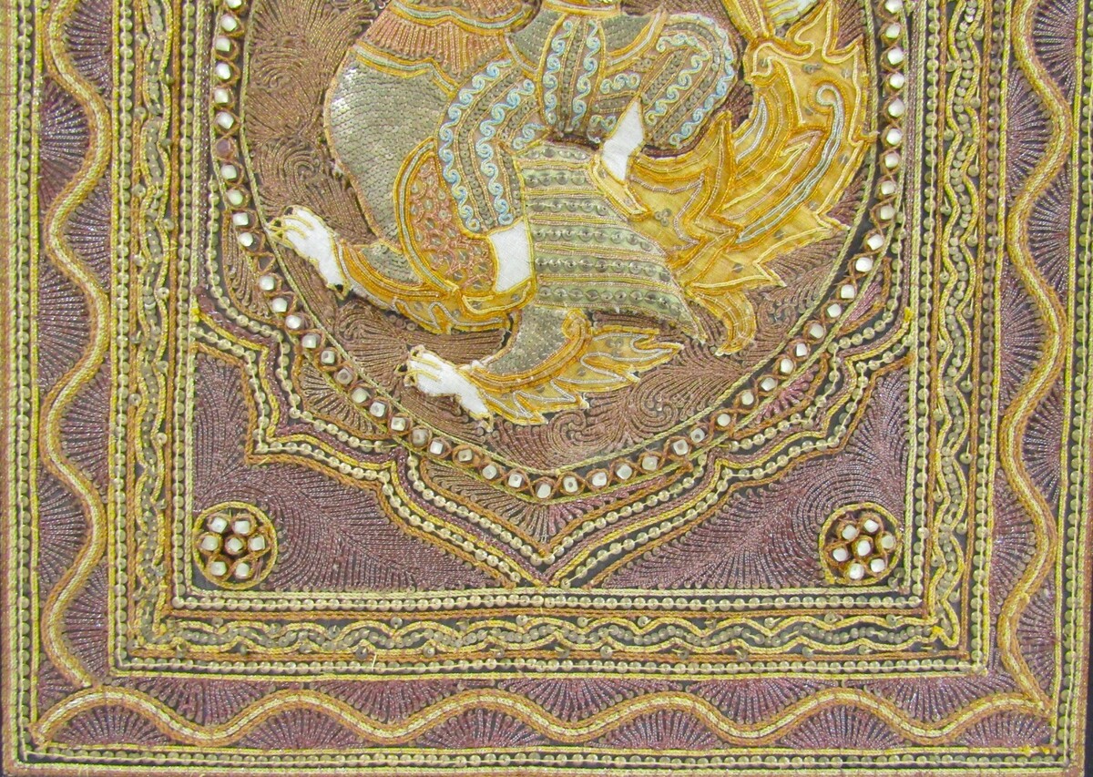 - Framed Antique Myanmar Thai Burmese Kalaga Padded Tapestry with Phoenix Bird