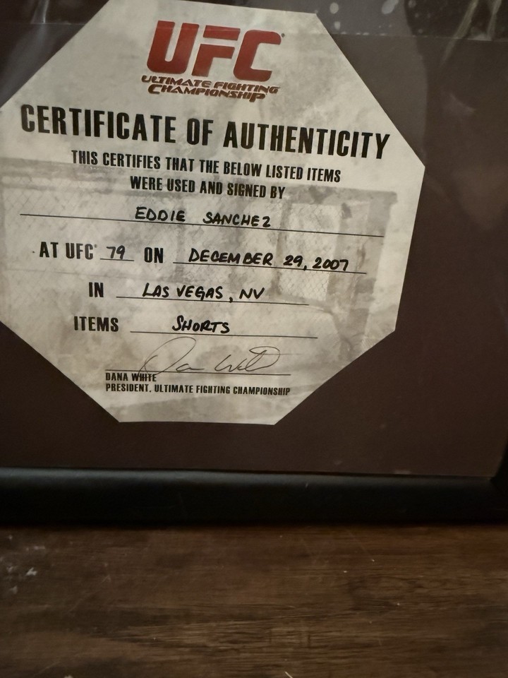 - Framed UFC 79 Fight Used Shorts Eddie Sanchez Dana White Signed COA