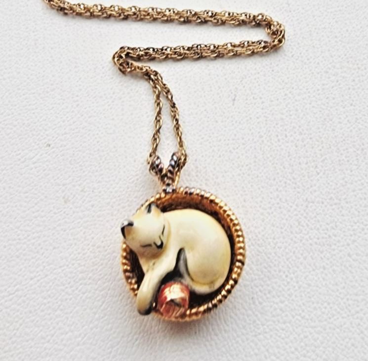 Franklin Mint Diamond Enamel Cat Sterling Silver 925 Vermeil VTG Necklace 1989