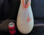 The Franz Butterfly Vase by Jen Woo is a large, elegant piece made of porcelain. Standing at 15 inches tall, this vase features a beautiful butterfly pattern in a multicolor design. Hand-painted with a glossy finish, this sculpture creates a 3D effect and is signed by the artist. Perfect for all occasions, this collectible piece adds a touch of sophistication to any space. Made in the 21st century, this original work of art is sure to be a standout piece in any collection.