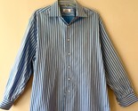 Fray for Neiman Marcus Sz L 17 Blue Striped Dress Shirt Stretch Long Sleeve