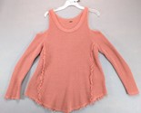 - Free People Open Shoulder Waffle Knit Sweater Women's L Apricot Cotton Fringe