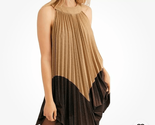 Free People Pleated Love Trapeze Mini Dress Metallic Gold Brown XS