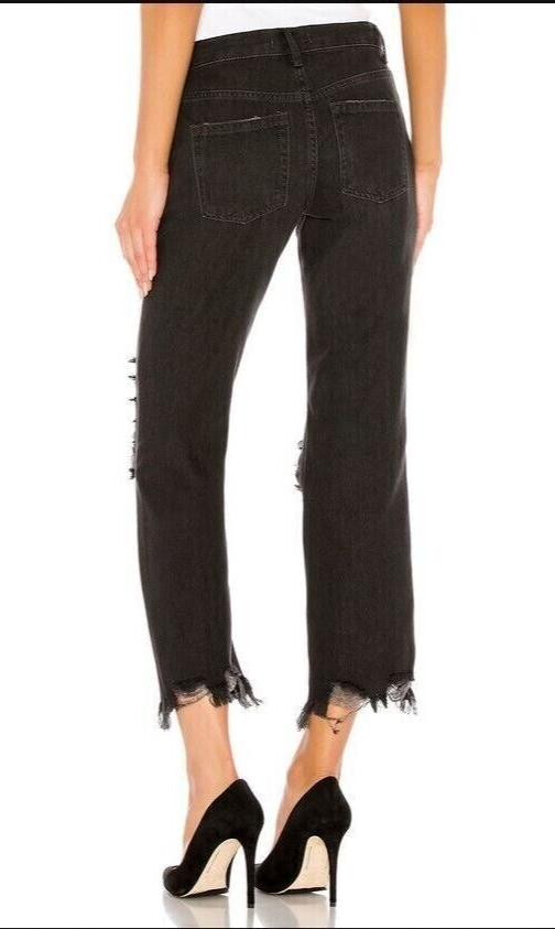 We The Free People Maggie Mid Rise Straight Jeans Washed Black Button Fly 31