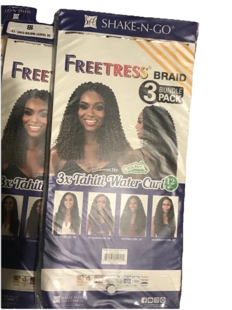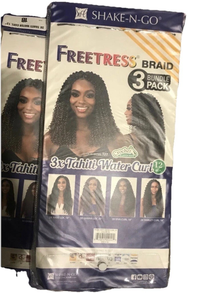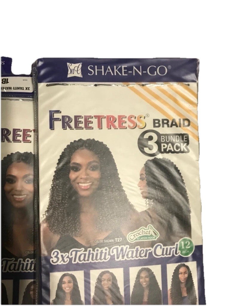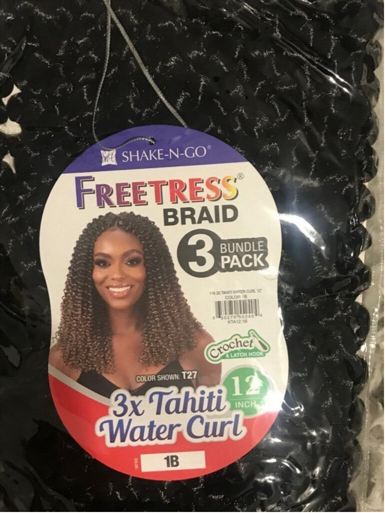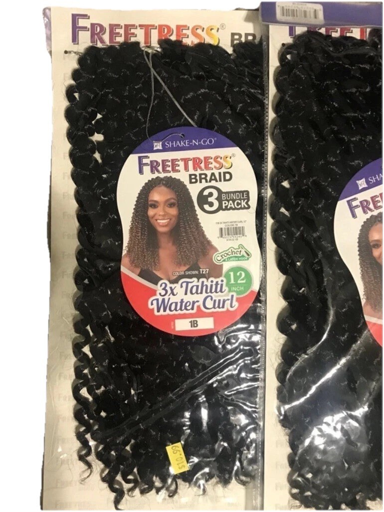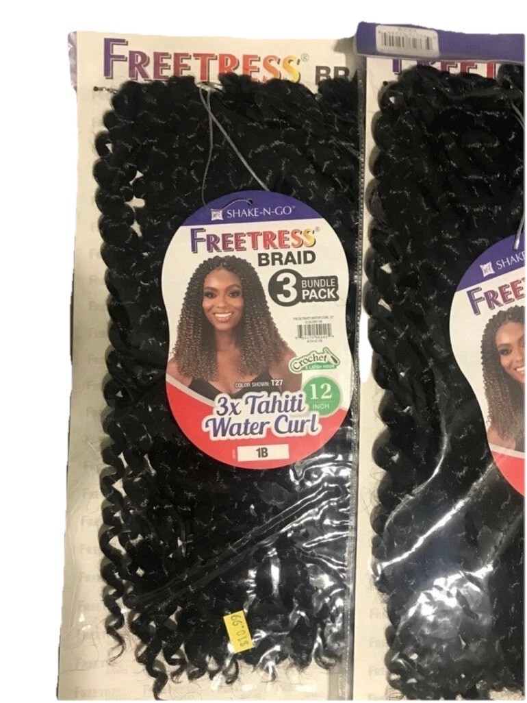 - Freetress Braid 3X Water Curl Crochet Hair 12" inches 3 packs 1B