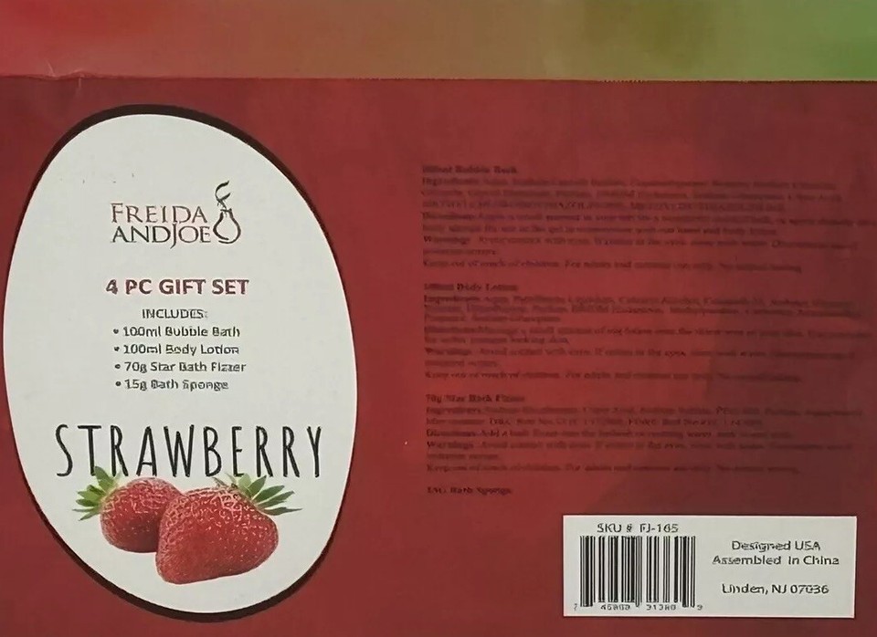 - Freida And Joe 4 Piece STRAWBERRY Bubble bath/Body Lotion/ Bath Bomb Set