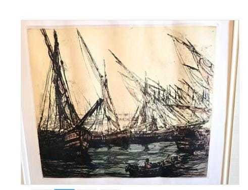 French Ships Fishing Boats Art Lithography Print From Louvre Museum - This item came from the Louvre Museum in France stamped with seal - Good Condition minor wear Framed, but no glass cover, See Photos - Measures 26" H x 27" W ... Includes FREE SHIPPING. Note the projected collectibles, vintage, antiques, and memorabilia, U.S. market is poised for substantial growth on-average 6.5% Compound Annual Growth Rate (CAGR) to reach $280 Billion revenue by 2033.