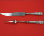 French sterling silver hollow handle with stainless implements (blade/tines) Steak Carving Set 2-Piece with basket of flowers with bow handle motif (maker unknown). This set includes: