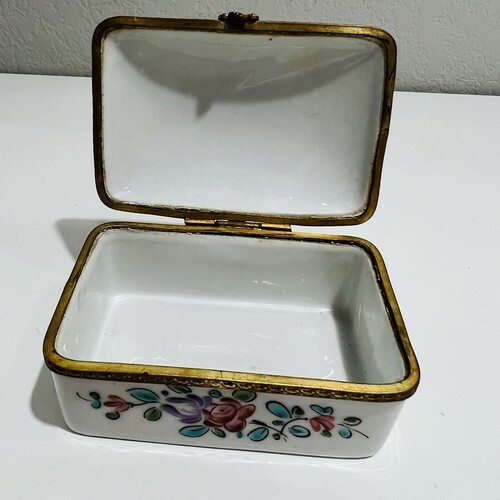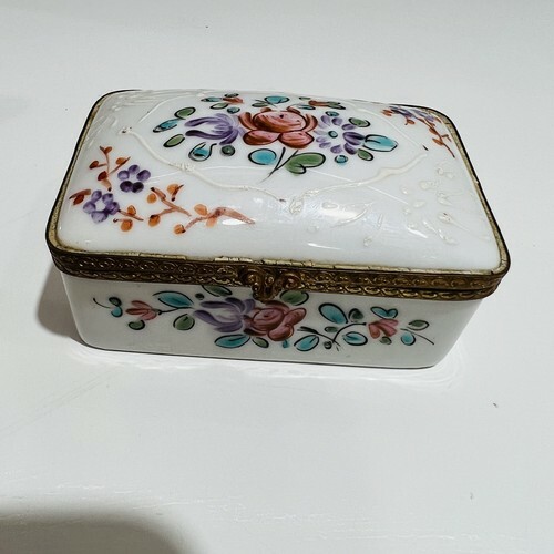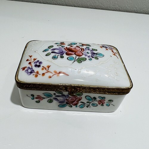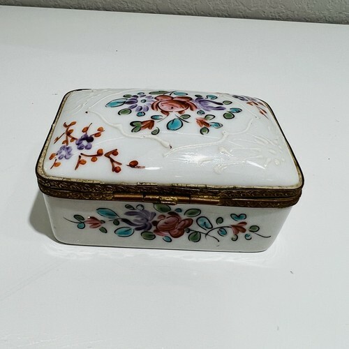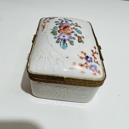 Trinket Box French Porcelain Floral Decoration Made In France with Lid Antique