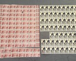 These sheets are mint never hinged (MNH) except for the noted damage on the 50c sheet. Original gum is intact on all stamps.