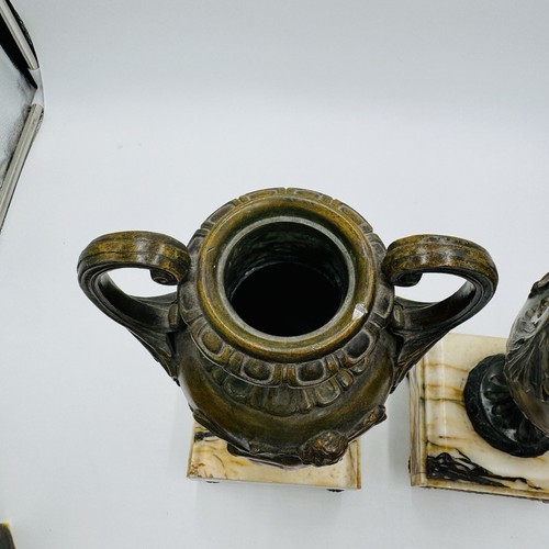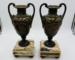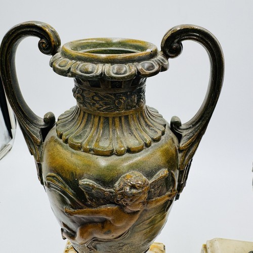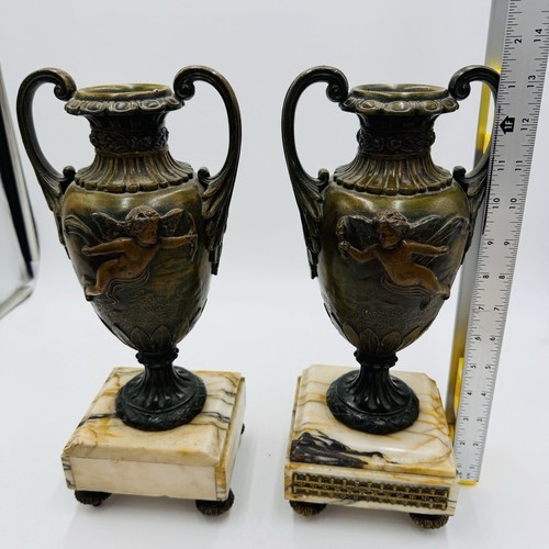French metal vases rare 1800s Chateau ornate chimney cherubs marble base 13.5in