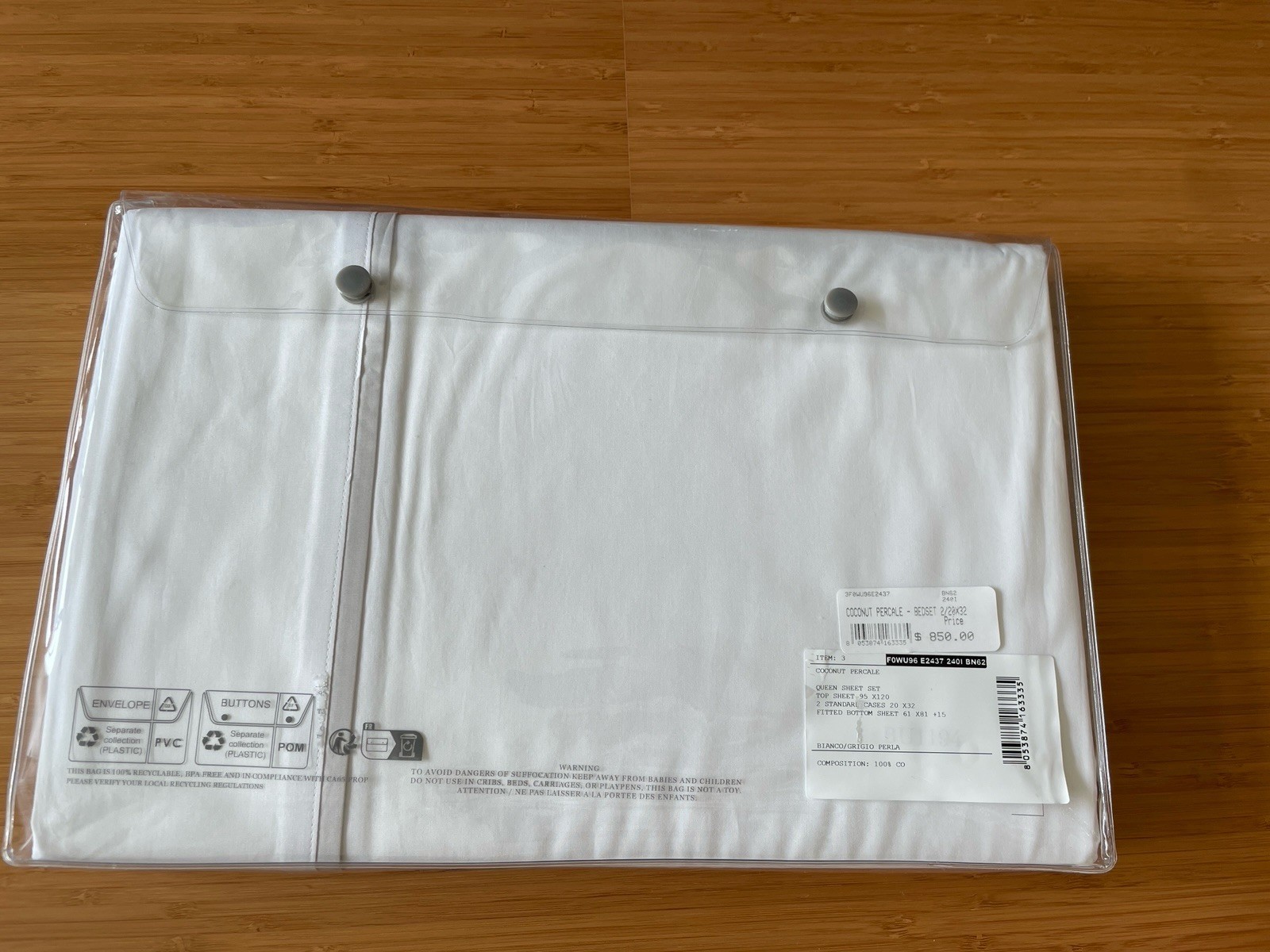 Frette Queen Sheet Set White/100% Cotton Coconut Percale. Condition is New with tags. Shipped with USPS Priority Mail.