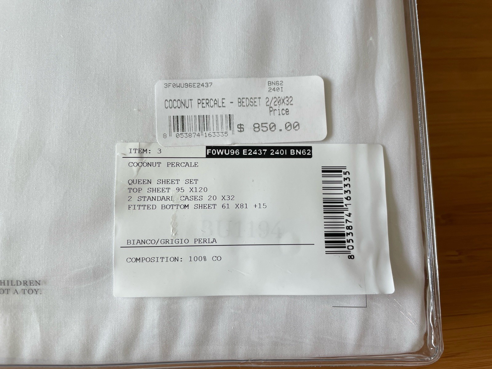 - Frette Queen Sheet Set White/100% Cotton Coconut Percale