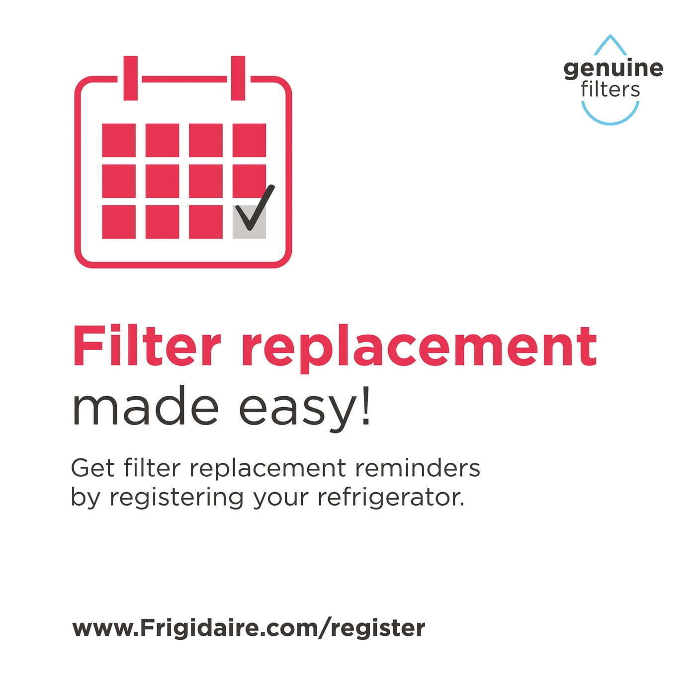 Another seller's product might look like this, but it could be counterfeit. The market is full of underpriced counterfeit water filters. When it's time to replace your refrigerator's water filter, you can trust buying directly from Frigidaire. Frigidaire Water Filter WF2CB is certified to reduce contaminants. Purity You Can Trust - Know for certain your filter is a protector. Counterfeits and knockoffs put fridges and health at risk. Frigidaire Genuine Filters ? the smarter, safer choice. Every Drop Gives Back - Partnered on sustainability efforts, Frigidaire Genuine Filters save the cost of bottled water and cut back on plastic. Filters Out up to 99% of Contaminants - Reduces Chlorine Taste Odor, Particulates Class I, Cysts, Lead, Mercury, Pesticides, Insecticides, BPA, Asbestos, Pharmaceuticals and more. Slide Click Easy Install, Keeps Great Tasting Water Flowing up to 6 Months, Water Quality Association Certified.