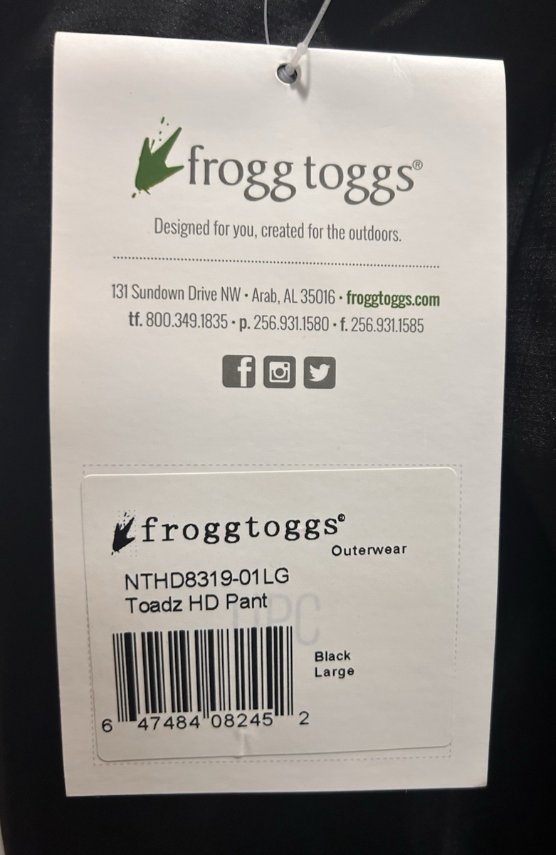 - Frogg Toggs HD Toadz Men's Belted Pants Waterproof Black - Size Large - NEW !