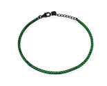 Delicately thin tennis bracelet accentuated brilliantly by emerald green cubic zirconia stones.