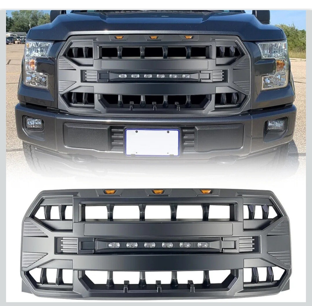 The Front Grill Replacement for F150 2015 2016 2017 by Megaie is a stylish and durable option for those looking to upgrade their vehicle's exterior. This matte black front bumper grille features a mesh design, adding a sleek and modern look to the front of your truck. Specifically designed for F150 models from 2015 to 2017, this grille is a perfect fit for those looking to enhance their vehicle's appearance with a high-quality and black-colored accessory.