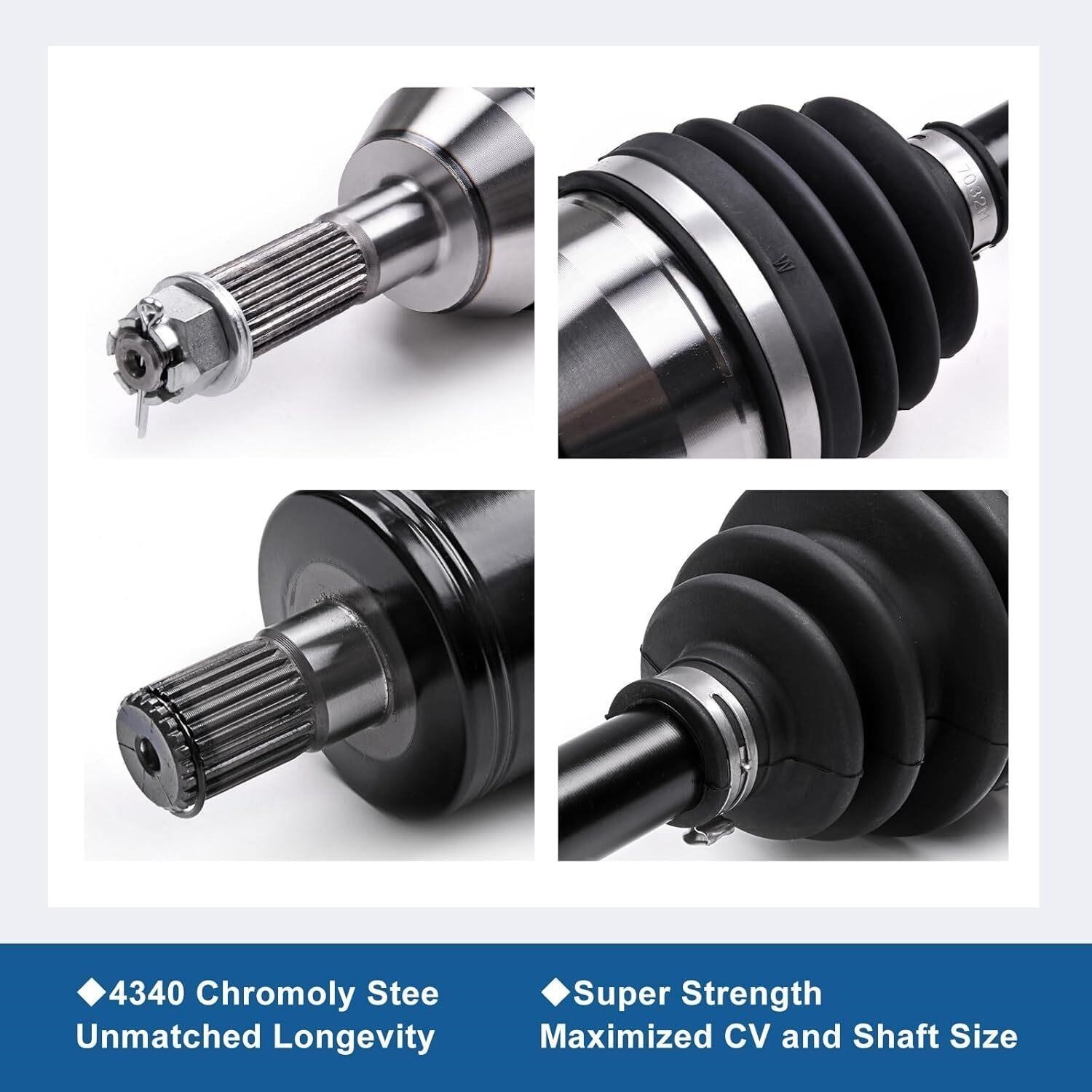 Superior Design: All front wheel bearing cv axle are made with heavy-duty 4340 chromoly steel for superior strength and longevity. Our high performance axles exceeds 20% of the strength and durability of the standard stock axles
