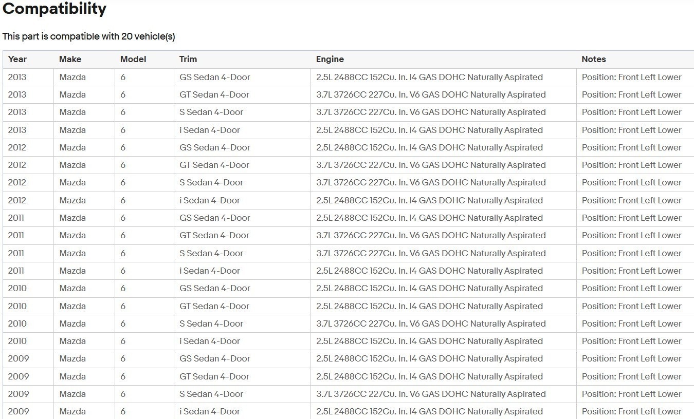 - Front Left Lower Control Arm, with Ball Joint & Bushing Mazda 6 2009-2013