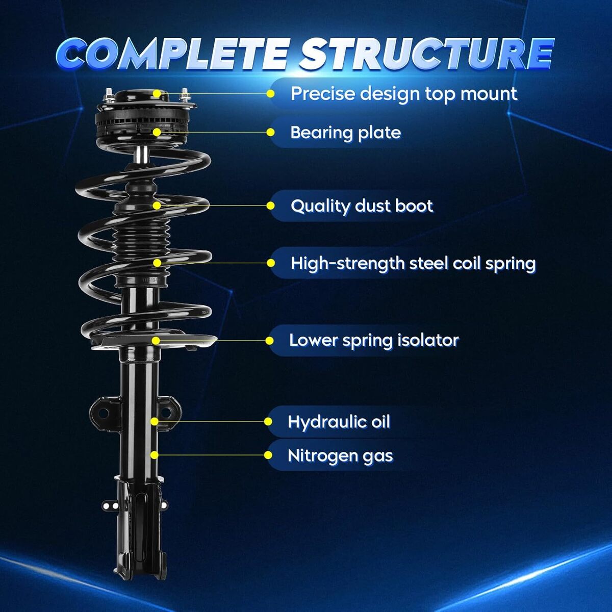 Compatible with: for Chrysler Town Country 2008-2016, for Dodge Grand Caravan 2008-2019; Excluding models with nivomat rear suspension Replace for Part Number: Replace 171128L 171128R 37290 Kit Includes: 1x front left strut shock assembly with coil spring, 1x front right strut shock assembly with coil spring, 1x rear left strut shock absorber, 1x rear right strut shock absorber Inflatable Design: Greater damping for greater work reliability; High-pressure gas and oil are separated by a floating piston, eliminating oil emulsification Quality Assurance: 12-month warranty! tested before shipping.