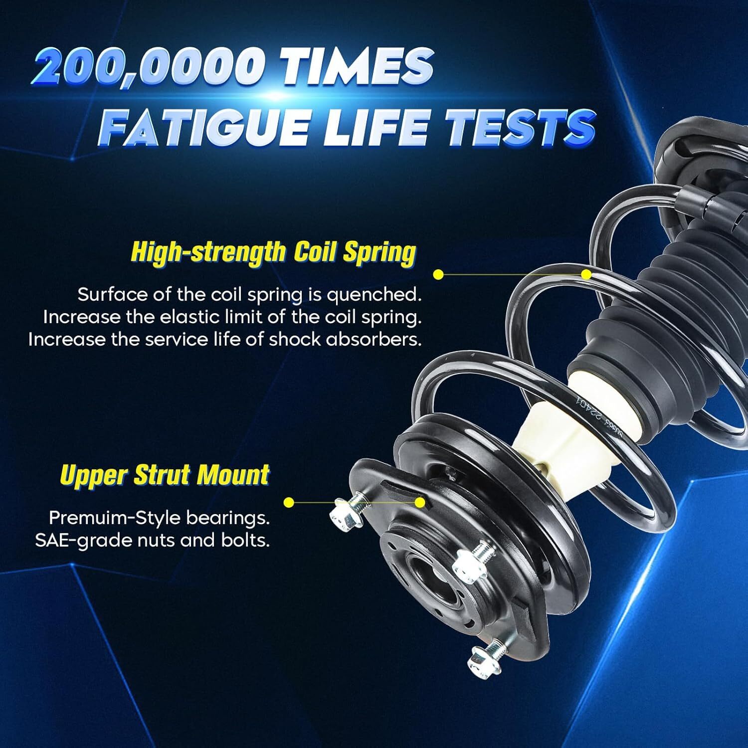 Compatible with: for Scion tC 2005-2010 Replace for Part Number: Replace 172390 172391 Kit Includes: 1x front left strut shock assembly with coil spring, 1x front right strut shock assembly with coil spring Inflatable Design: Greater damping for greater work reliability; High-pressure gas and oil are separated by a floating piston, eliminating oil emulsification Quality Assurance: 12-month warranty! tested before shipping, perfect match to the factory part. 100% satisfaction guarantee. for any problems, Pls contact us via email