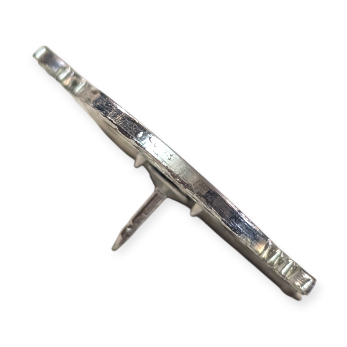 • Sculpted metal with enamel, and finished with a rubber back to keep secure.