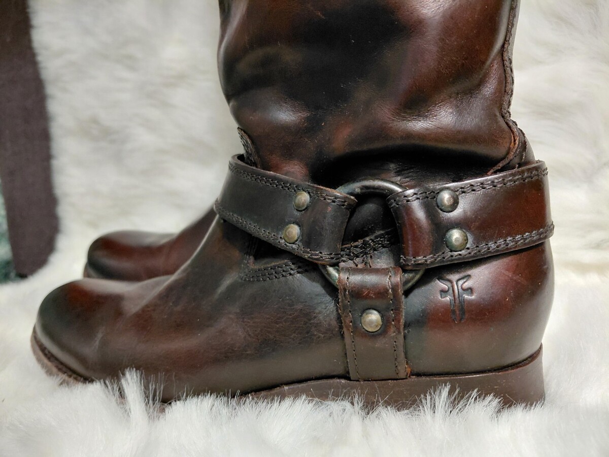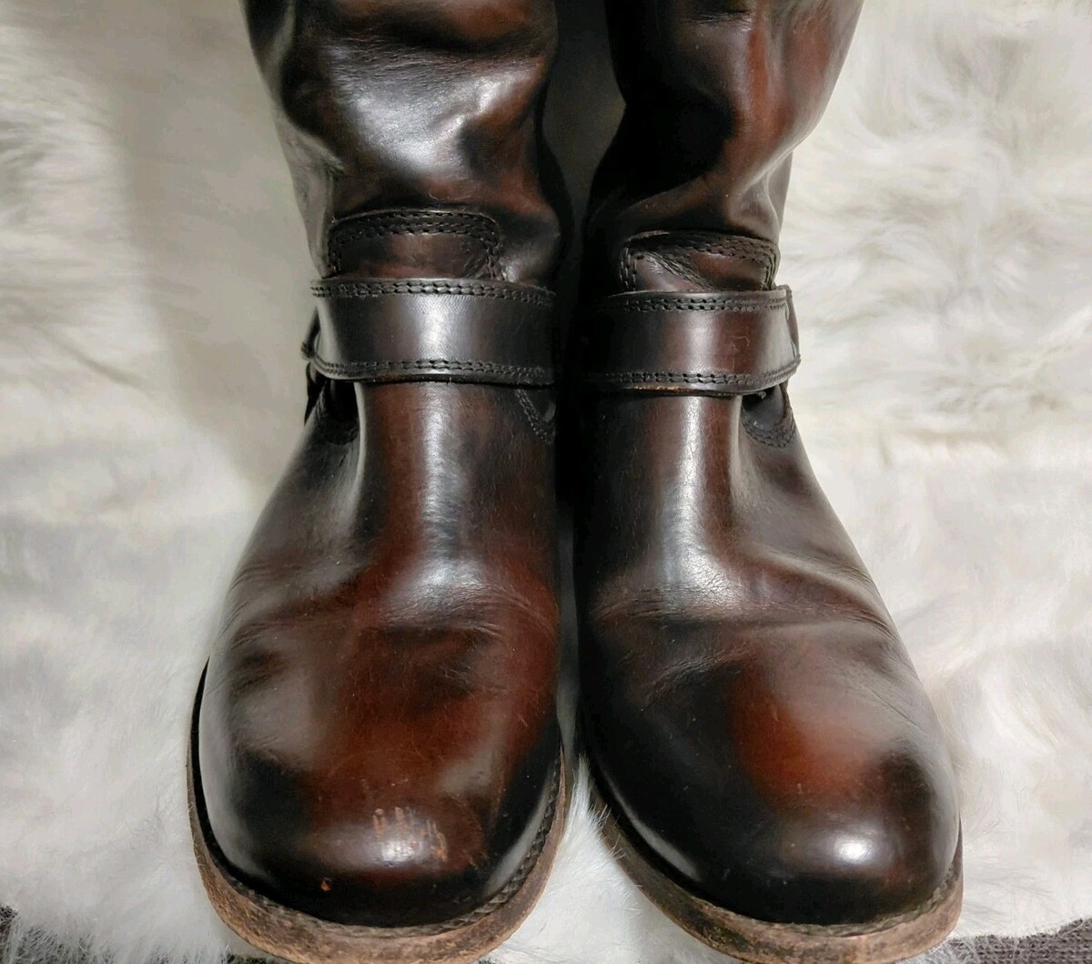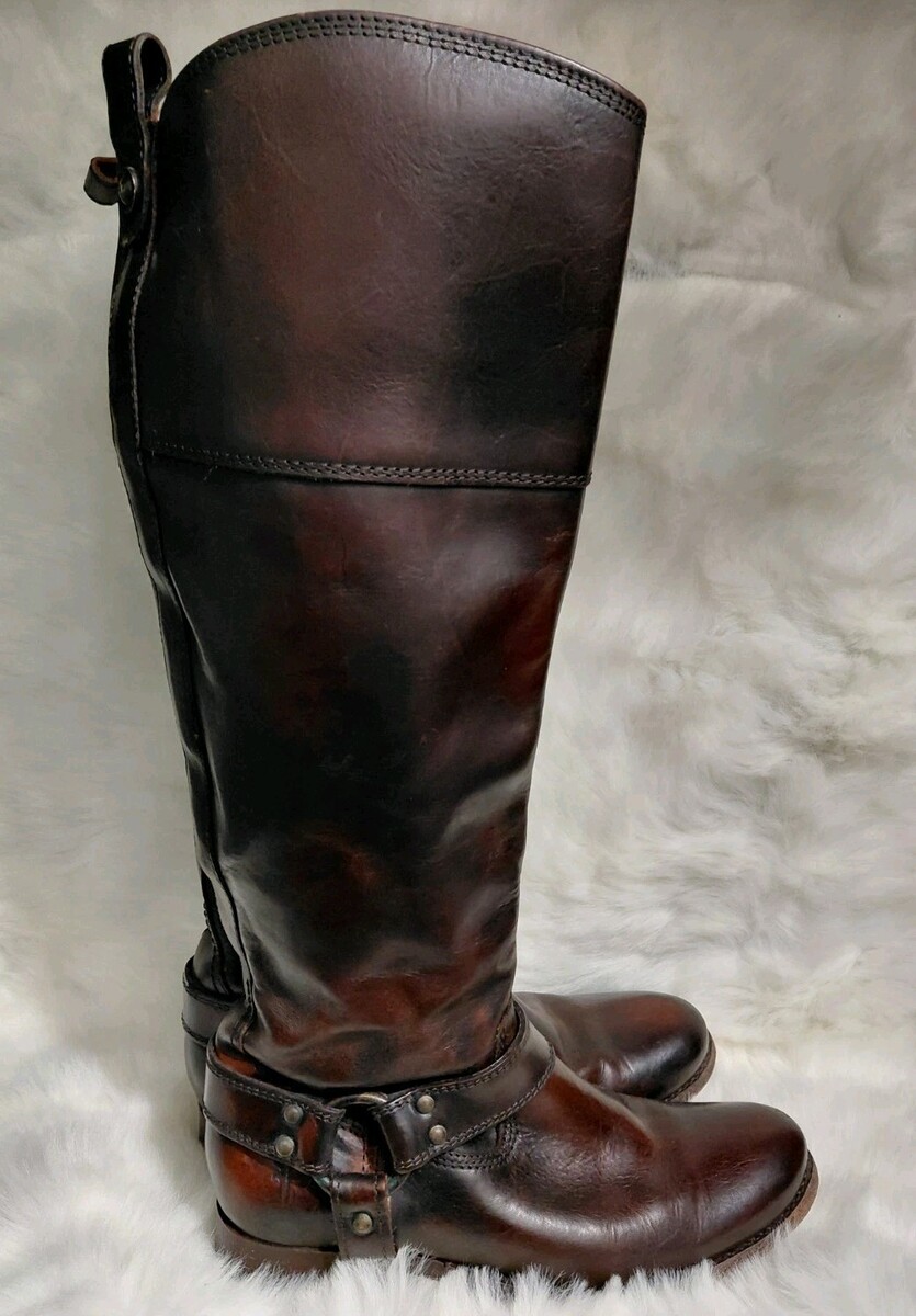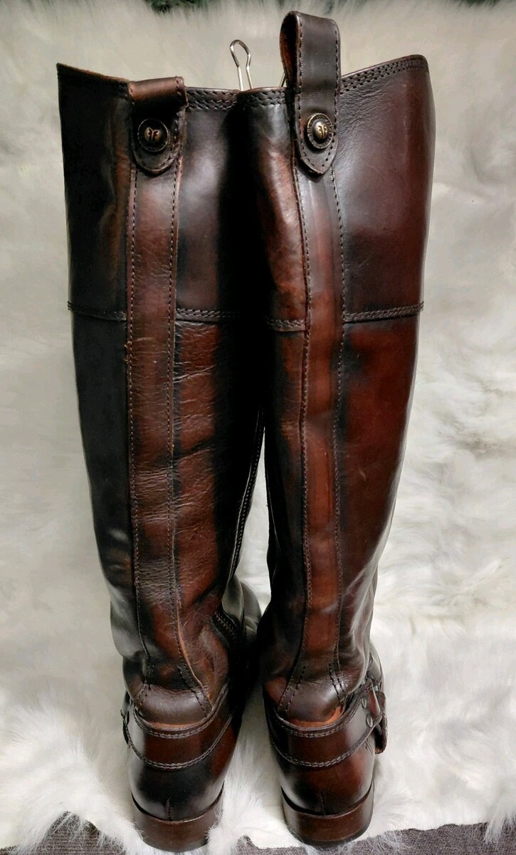 - Frye Melissa Extended Knee High Brown Harness Boots Size 5 1/2 B