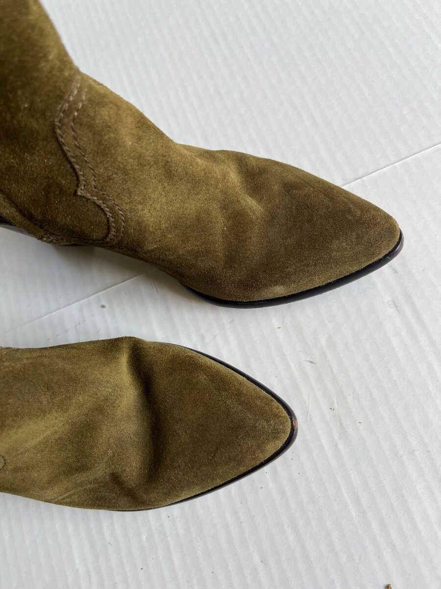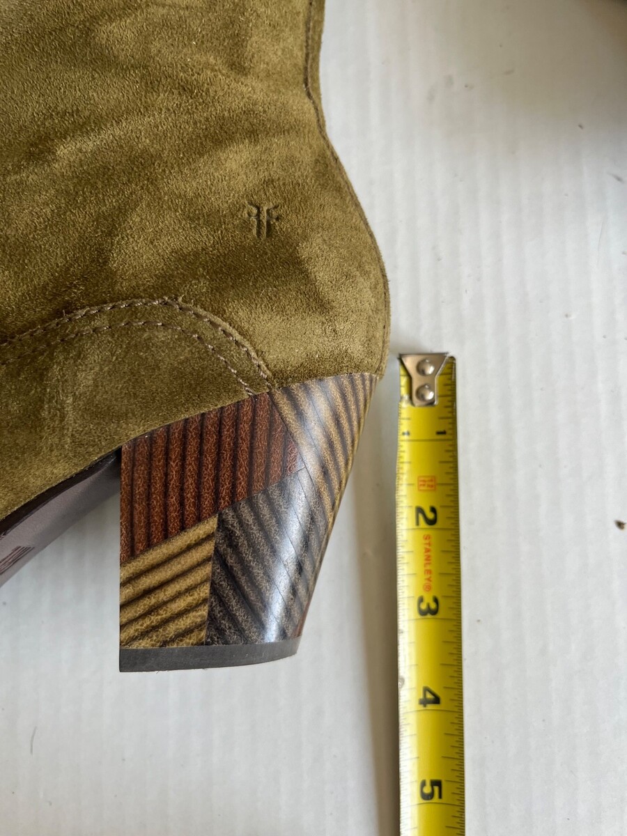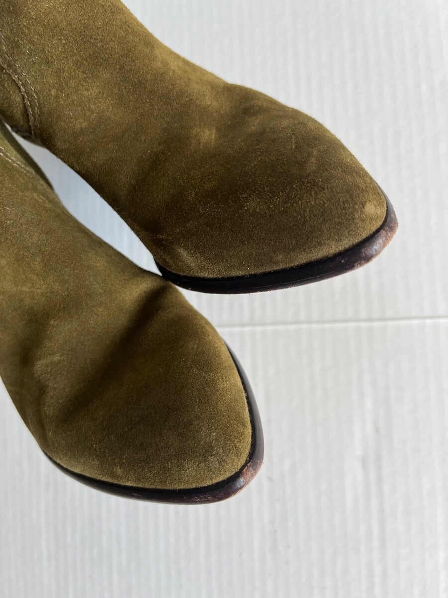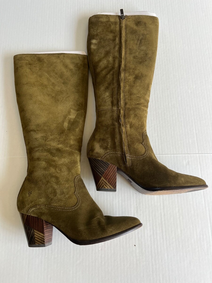 - Frye Reed Sz 7M Olive Green Suede Side Zipper Tall Casual Dress Heeled Boots
