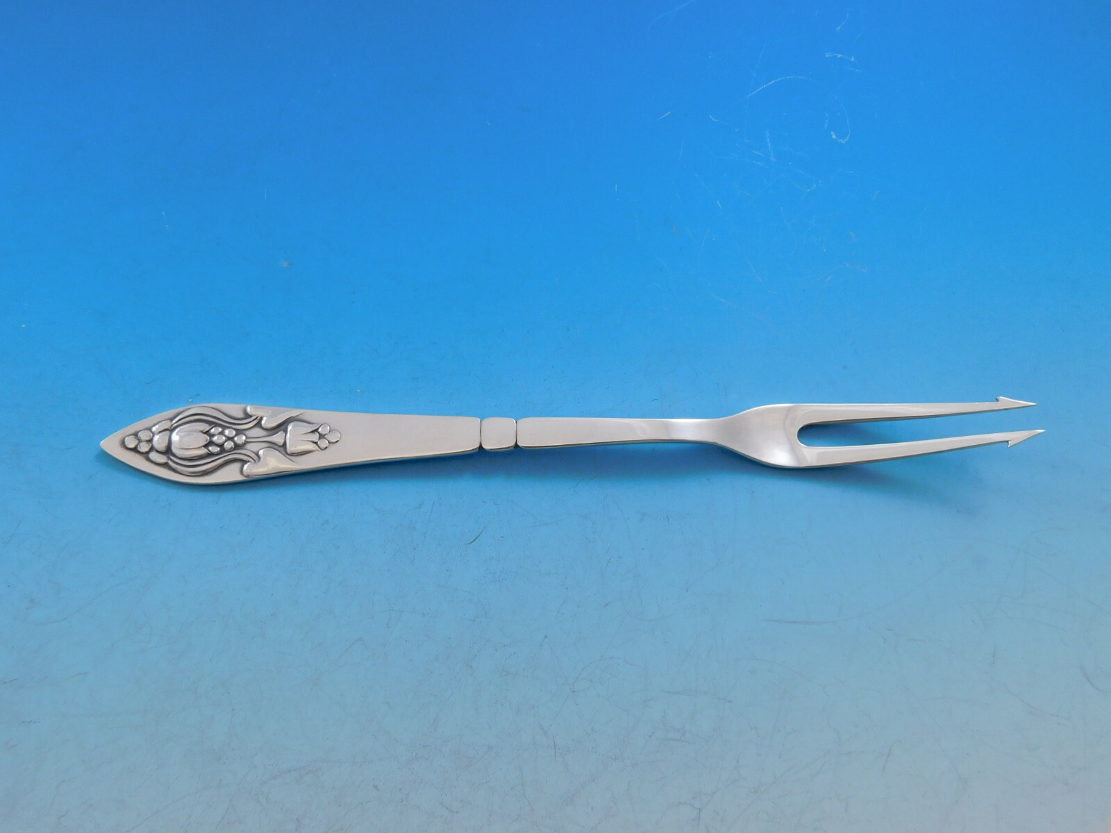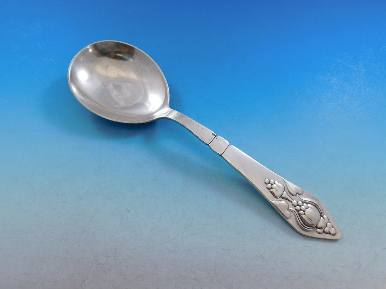 Superb Fuchsia AKA Klokke by Georg Jensen sterling silver flatware set, 148 pieces. This rare service includes: