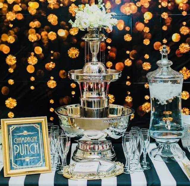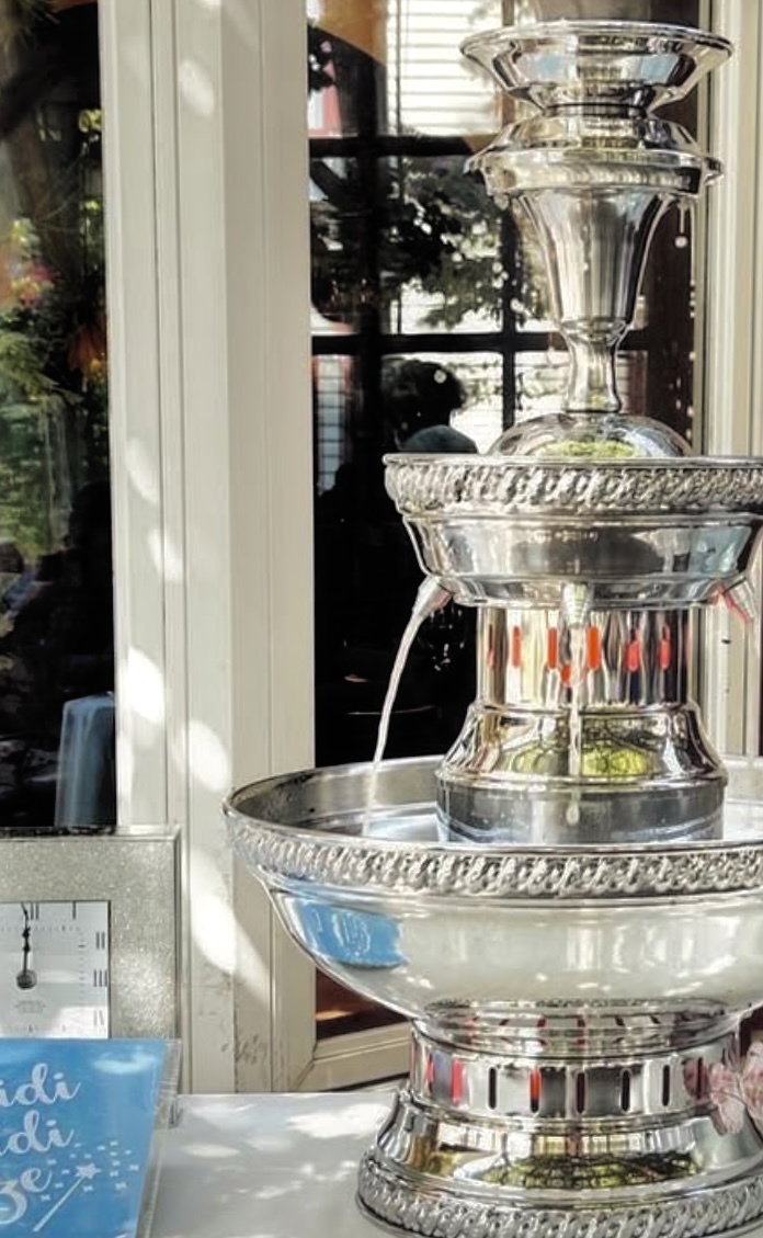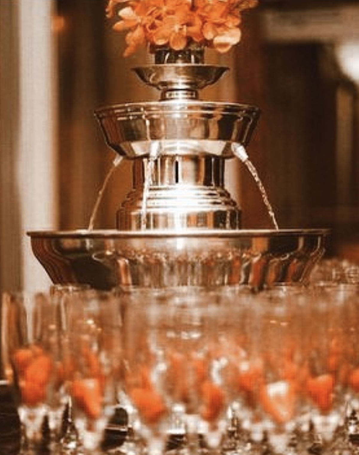 One of our signature handcrafted heaviest-gage stainless steel fountains. They are designed to encompass superior craftsmanship and timeless appeal. This fountain can create a unique self-serving beverage station - which can alleviate the pressure on bar staff or create a stations specifically for a signature drink at cocktail hour, happy hour, location for a transitioning space, or a place created just for the kids. All of our fountains serve alcoholic and non-alcoholic beverages: punch, champagne, sweet tea, lemonade and cocktails. In fact, fi you can mix ti behind the bar, you can pour it into a fountain!