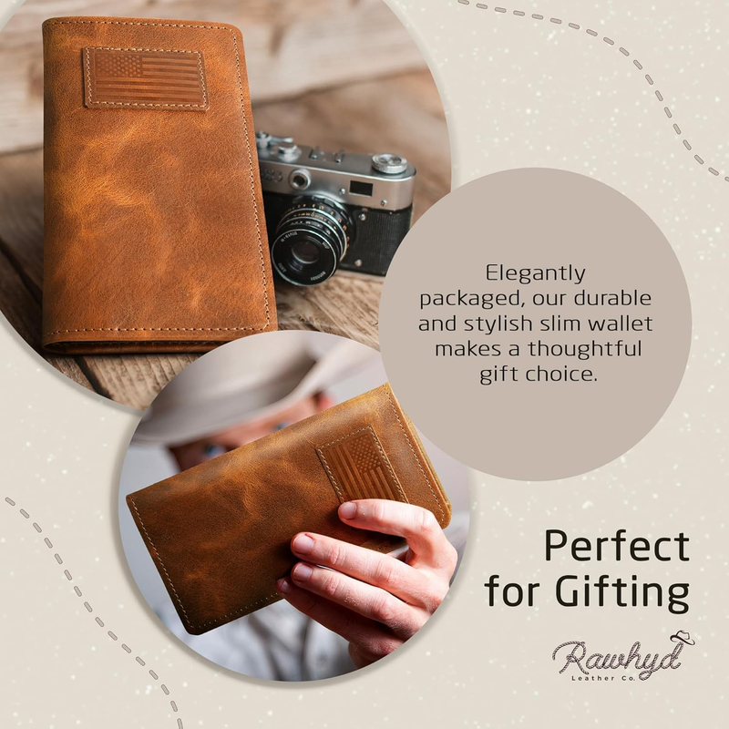 - Full-Grain Leather Bifold Wallet for Men - Classic Cowboy Style
