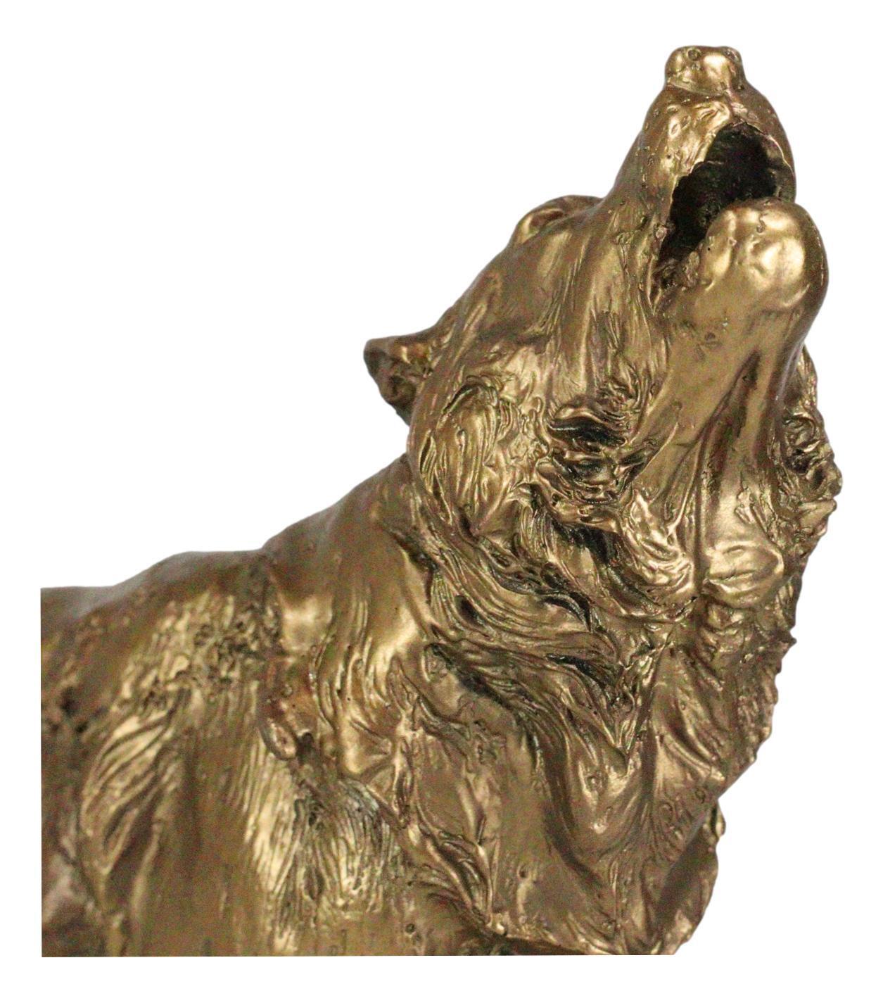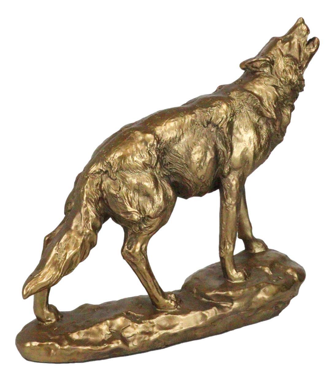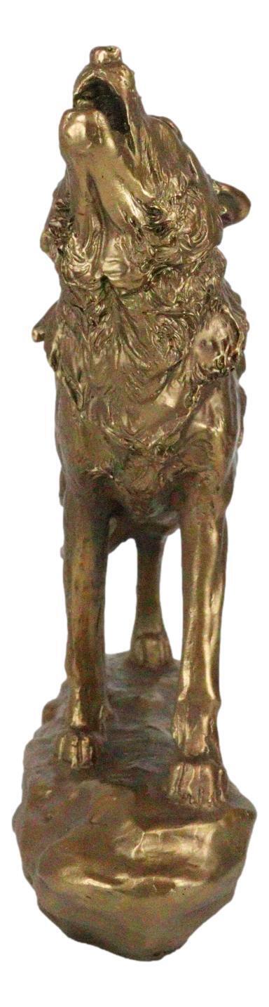 - Full Moon Howling Alpha Gray Wolf Timberwolf Statue In Gold Patina Finish 9"H