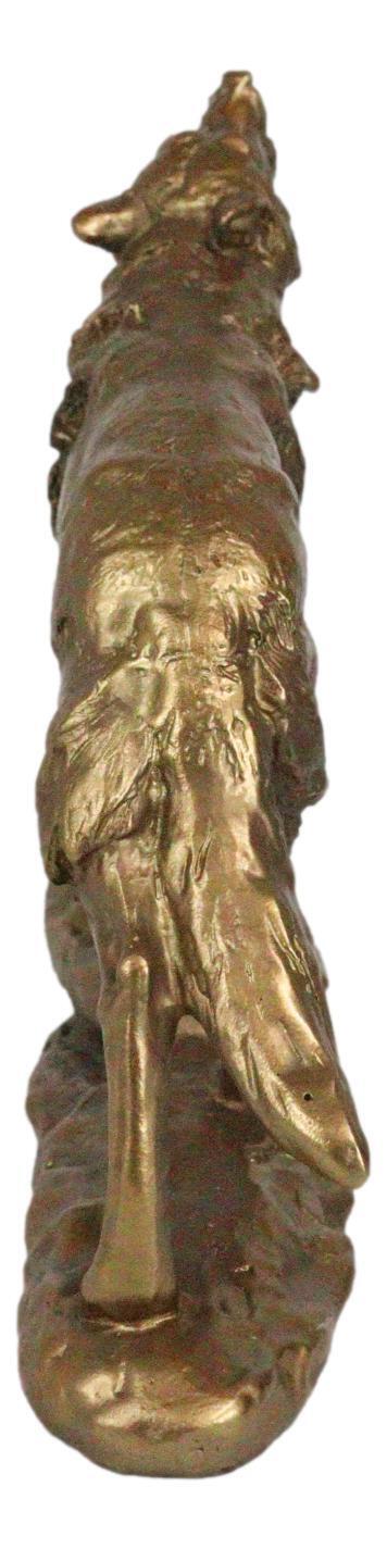 Full Moon Howling Alpha Gray Wolf Timberwolf Statue In Gold Patina Finish 9"H