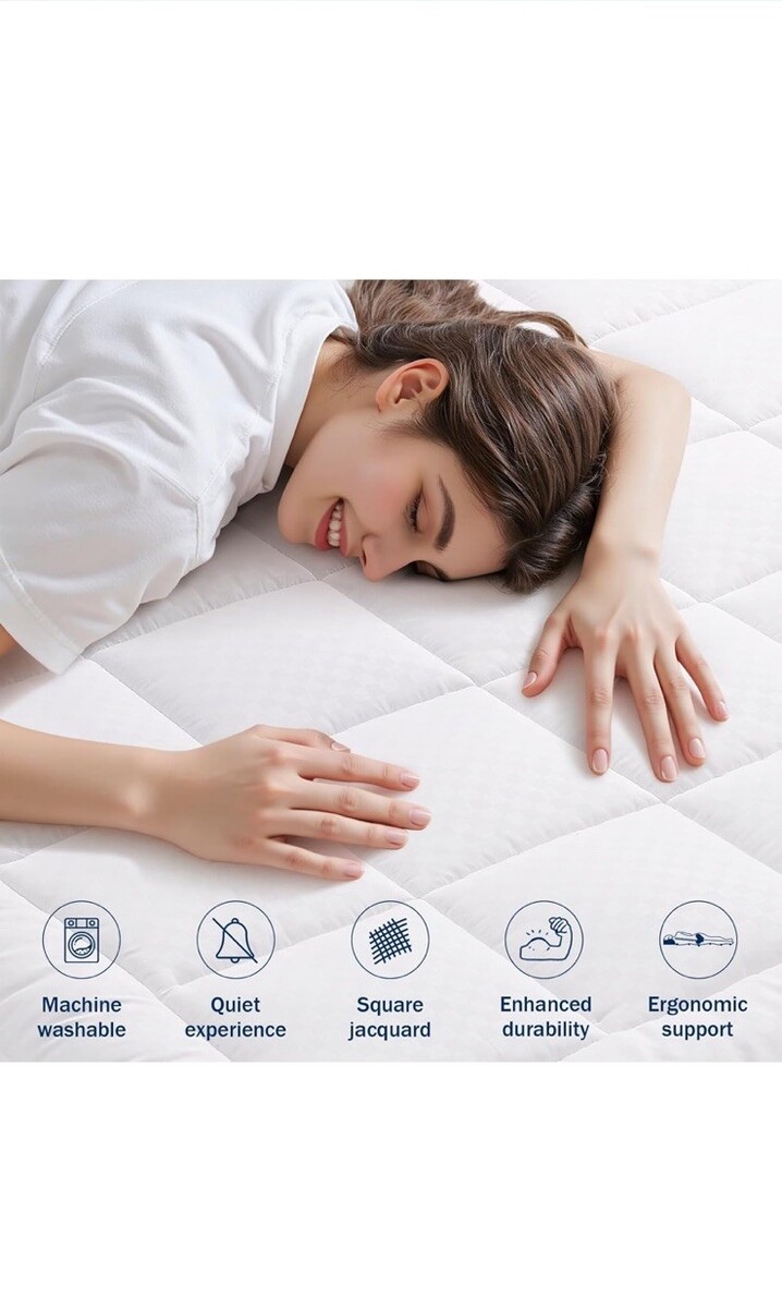 The Full Size XL Mattress Topper by Softby is a luxurious and comfortable addition to any bedroom. Made with soft 3D Snow Down Alternative Filling and brushed microfiber fabric, this mattress topper provides a cozy and supportive layer for a good night's sleep. The square pattern and white color give it a clean and elegant look, while the pull-on closure makes it easy to add to your mattress. Machine washable for easy care, this mattress topper is perfect for adults looking to upgrade their sleeping experience.