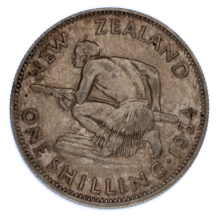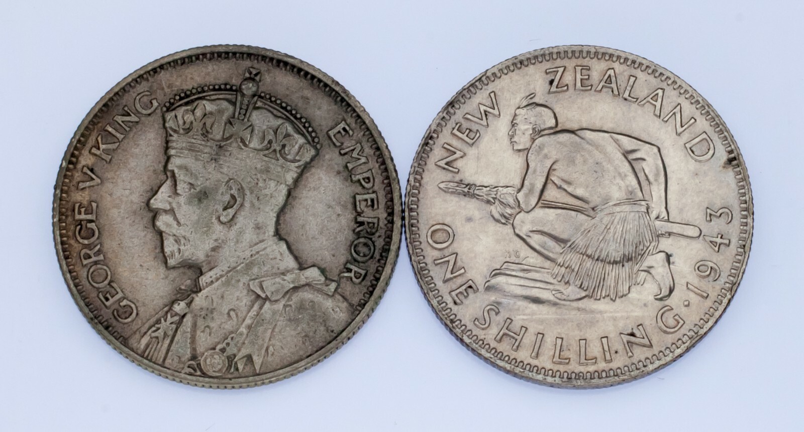Full of 2 Silver New Zealand 2 Shilling Coins 1934 + 1943 XF - Au- show origi...